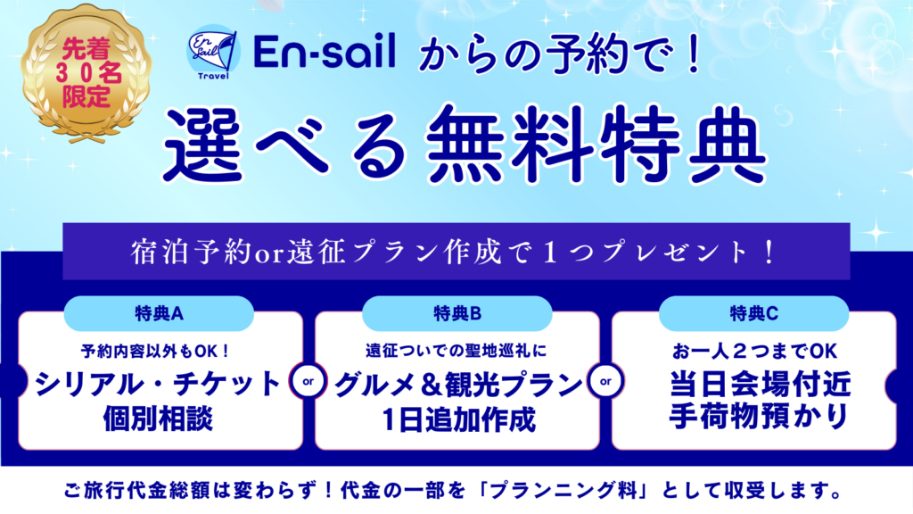 みなさまへの感謝を込めて、En-sailトラベル独自特典つきの 【先着30名限定】の特別キャンペーンを実施します。